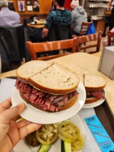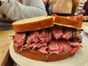 Katz’s Delicatessen ist eine wahre Institution in New York und ein absolutes Muss für Fleischliebhaber. Seit 1888 serviert dieses legendäre Deli das wohl berühmteste Pastrami-Sandwich der Welt. Der erste Biss in dieses Sandwich bleibt unvergessen – so viel Geschmack, so viel Fleisch und dazu noch die typischen amerikanischen Essiggurken, die das Ganze perfekt abrunden.